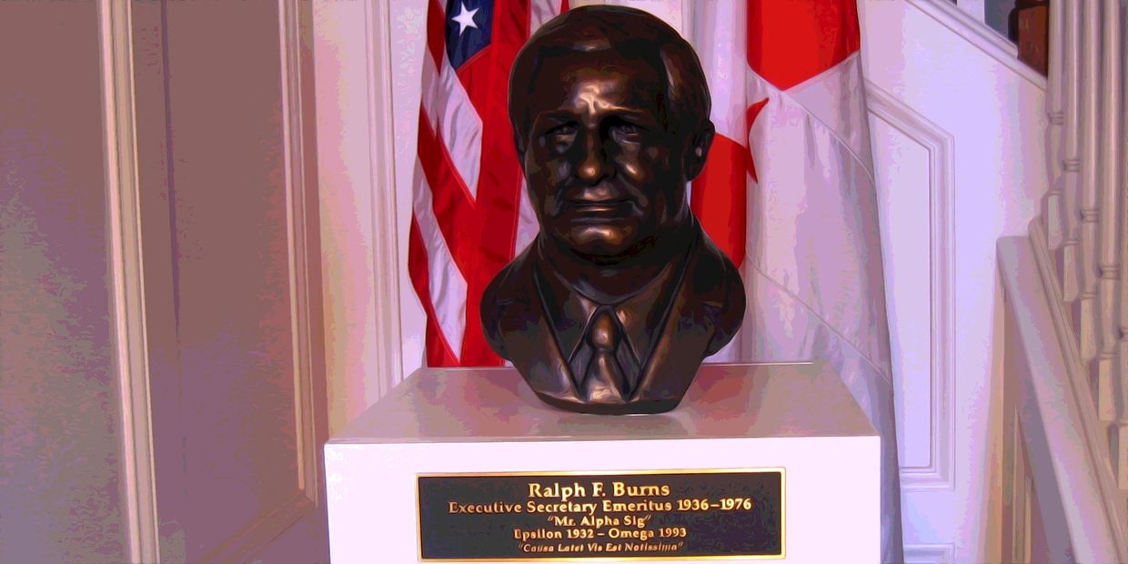 History comes to life when you step into the Ralph F. Burns Alpha Sigma Phi Headquarters. The main foyer is dedicated to the building's namesake, Ralph Burns, and includes photos from his time on staff, his official portrait, and roster book. There is also a room dedicated to showcasing our history called the Gary A. Anderson Archives Room, named after former Fraternity Executive Director Gary A. Anderson, Westminster '71, which includes photos of our Founders, a blueprint of the original Badge created by Tiffany and Company, and much more. In addition to the archives that are on display, the Fraternity also maintains archives of past national meetings, conferences, and events.