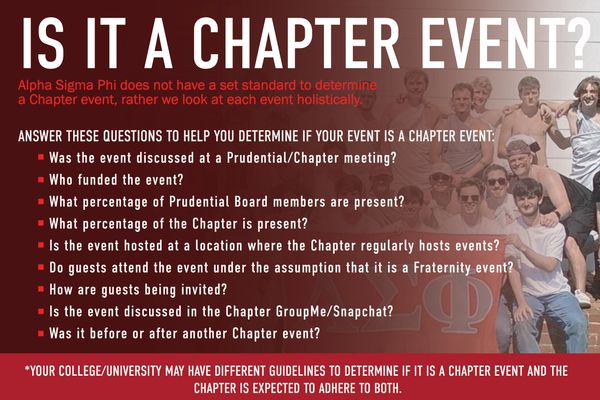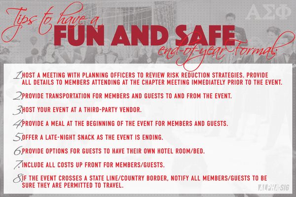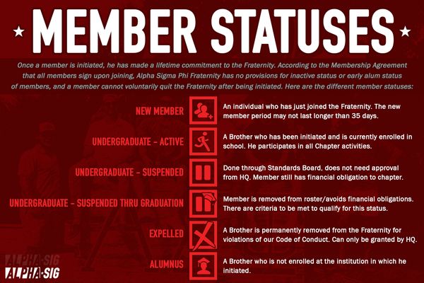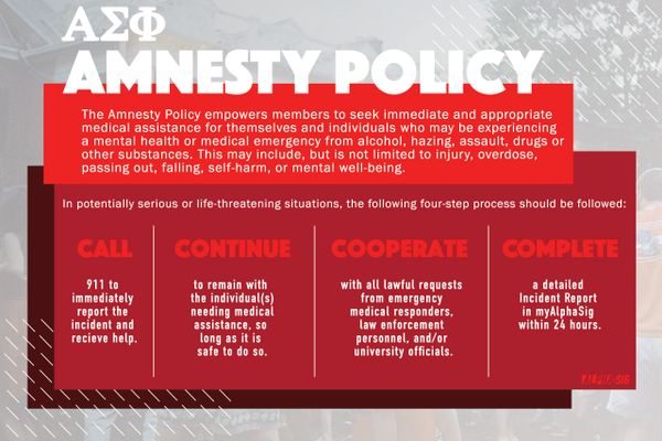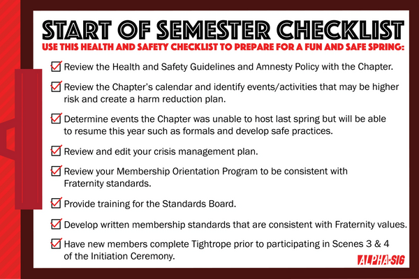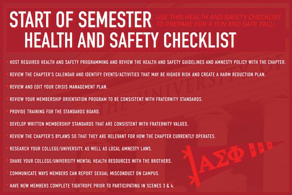 Alpha Sigma Phi has made the health and safety of its undergraduate members and their peers a top priority. Click here to view the Fraternity's Health & Safety Guidelines.